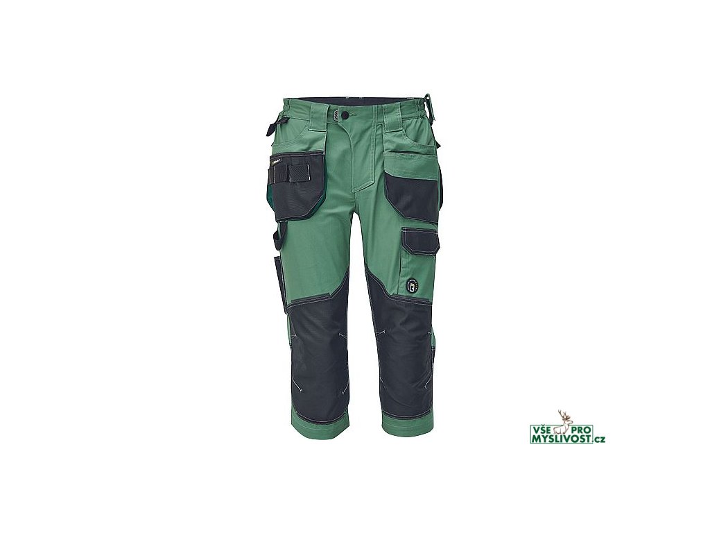 • pánské pracovní 3/4 kalhoty s pružným pasem • elastický inovativní materiál TRIFIBETEX® • odolné trojité prošití nohavic a sedu • Oxford 600D zesílení v oblasti kolen s možností vkládání kolenních výztuh • prostorné multifunkční přední kapsy s poutky na nářadí • reflexní prvky v barevném odstínu