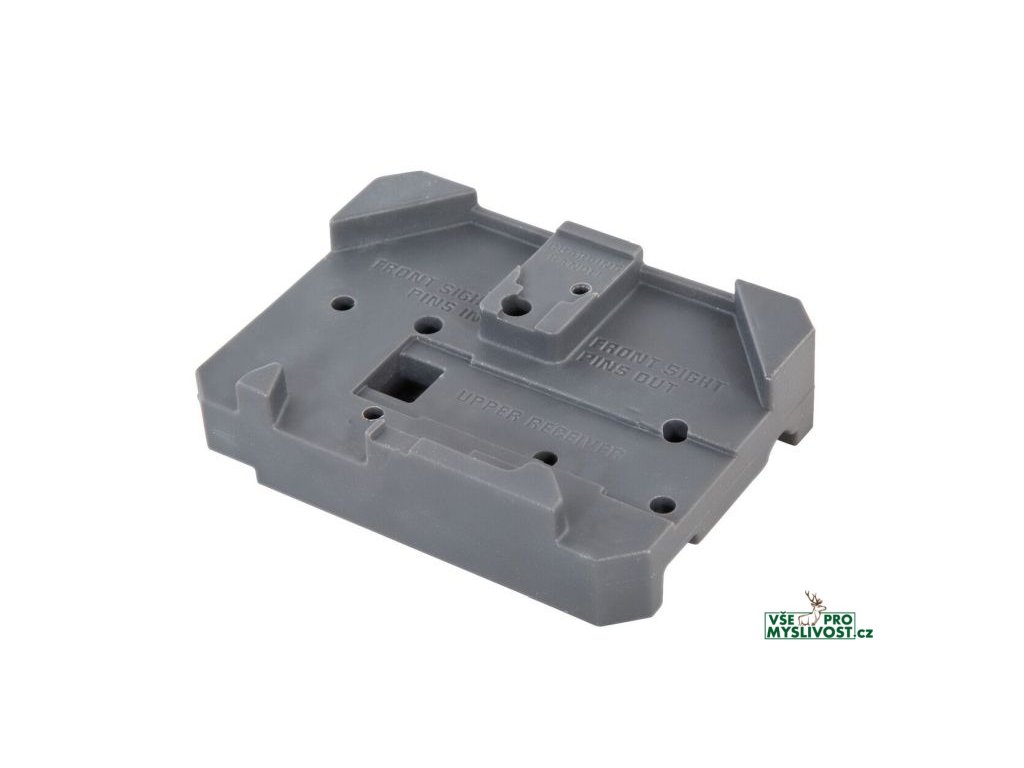 Speciálně navržený puškařský přípravek pro montáž a demontáž zbraní na platformě AR-15, AR Bench Block je dokonalým nástrojem, který nabízí tolik potřebnou "třetí ruku", a bezpečně Vám podrží horní pouzdro závěru, spodní pouzdro závěru, mušku i natahovací páku, zatímco Vy máte obě ruce volné na práci.