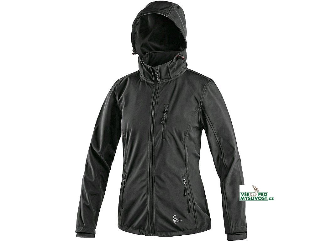 Dámská softshellová bunda s odepínací kapucí, odolná proti vodě a větru, zapínaní na zip, větrání v podpaží, rukávy s vnitřními manžetami, stahování v dolním okraji, spodní kapsy na zip, reflexní doplňky, TPU membrána. Odolnost materiálu proti průniku vody 10 000 mm mimo oblast švů, paropropustnost 3 000 g/m2/24h.