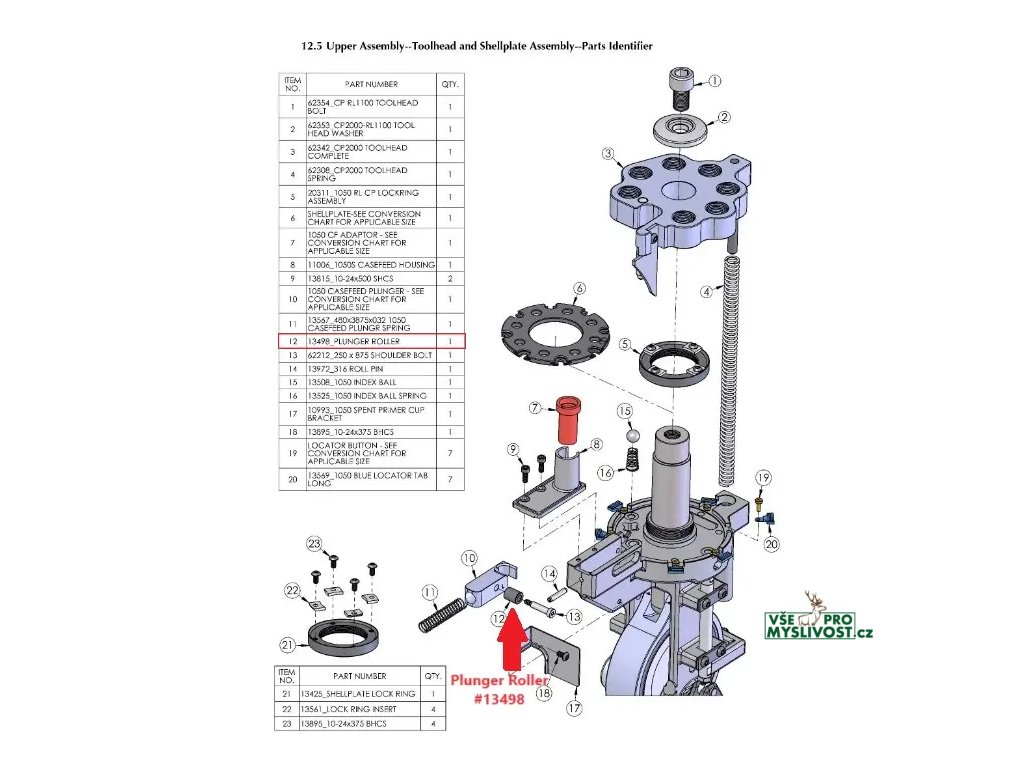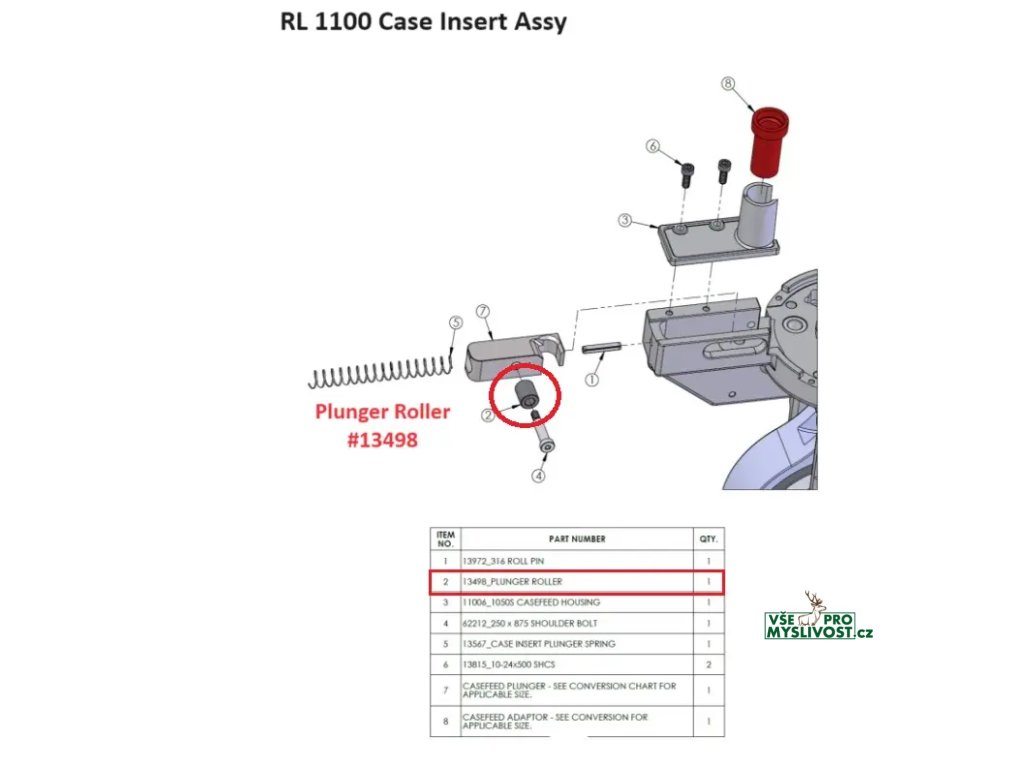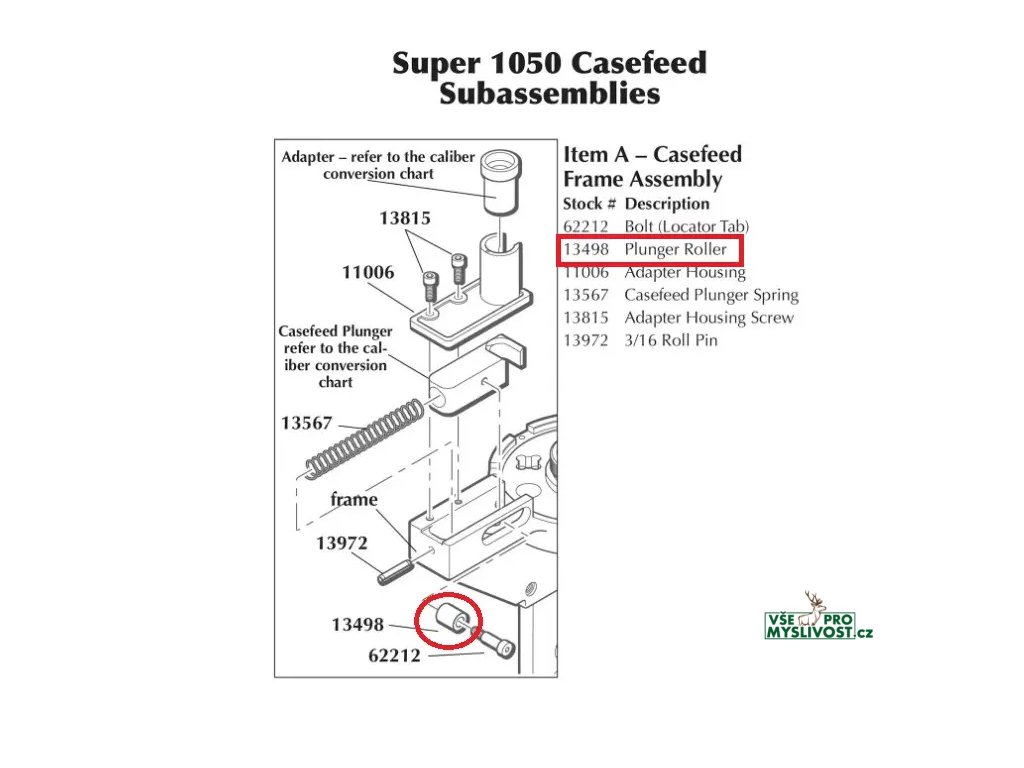 Originální náhradní díl pro podavač nábojnic přebíjecích lisů Dillon Super 1050 a RL 1100.