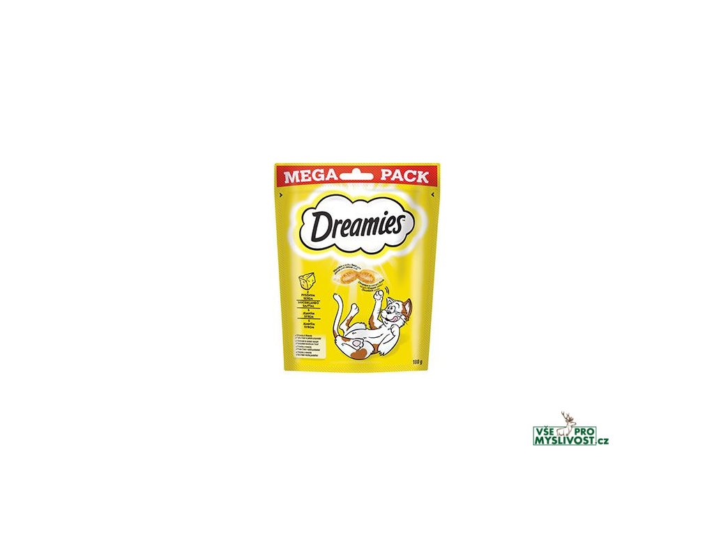 Dreamies křupavé polštářky plněné jemným krémem se sýrovou příchutí. Kočky šílí po neodolatelné chuti kočičích pamlsků DREAMIES. Lahodné a křupavé zvenku, měkké uvnitř – kočky jednoduše nedokáží odolat skvělé chuti DREAMIES. Tak jen do toho, zatřeste sáčkem a sledujte, jak se k vám vaše kočka rozběhne.