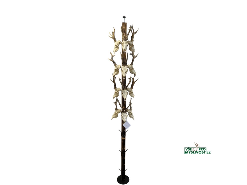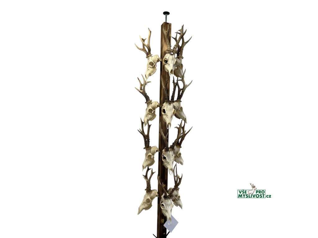 Dřevěný stojan na srnčí trofeje s kovovou podnoží a rozpěrou se závitem ke stropu