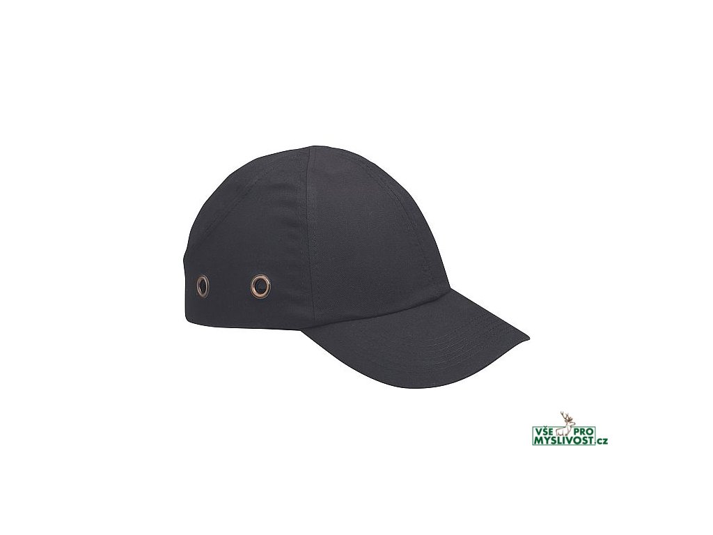 bavlněná čepice s pevným kšiltem, plastovou vnitřní výztuhou a možností nastavení velikosti pomocí suchého zipu; odpovídá normě EN 812.
