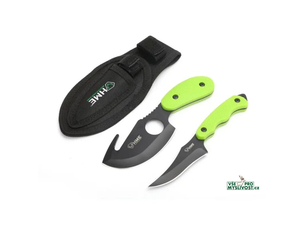Praktická sada základního náčiní pro zpracování zvěřiny: větší nůž s párákem a menší nůž na jemné práce. Oba nástroje jsou vyrobeny z pevné a odolné oceli 420HC a jsou opatřeny protiskluzovou TPE rukojetí.