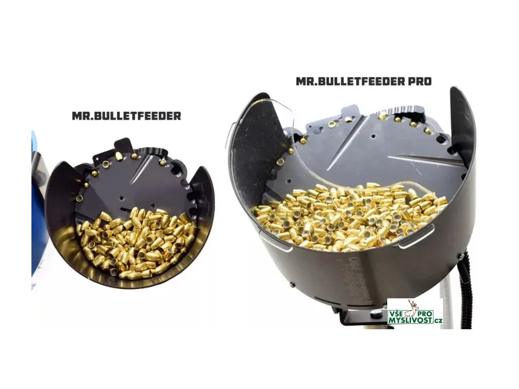 Násypka na střely (collator) je mnohem větší, proto pojme až trojnásobnou kapacitu oproti původní verzi podavače střel Mr.Bullet Feeder. Deska podavače (plate) se otáčí stále stejnou rychlostí, ale zdvojnásobení počtu výřezů na jednu otáčku znamená, že podavač střel dokáže podat dvakrát více střel za minutu oproti základnímu modelu (např. ráže 9 mm produkuje rychlostí 7 200 kusů za hodinu!).