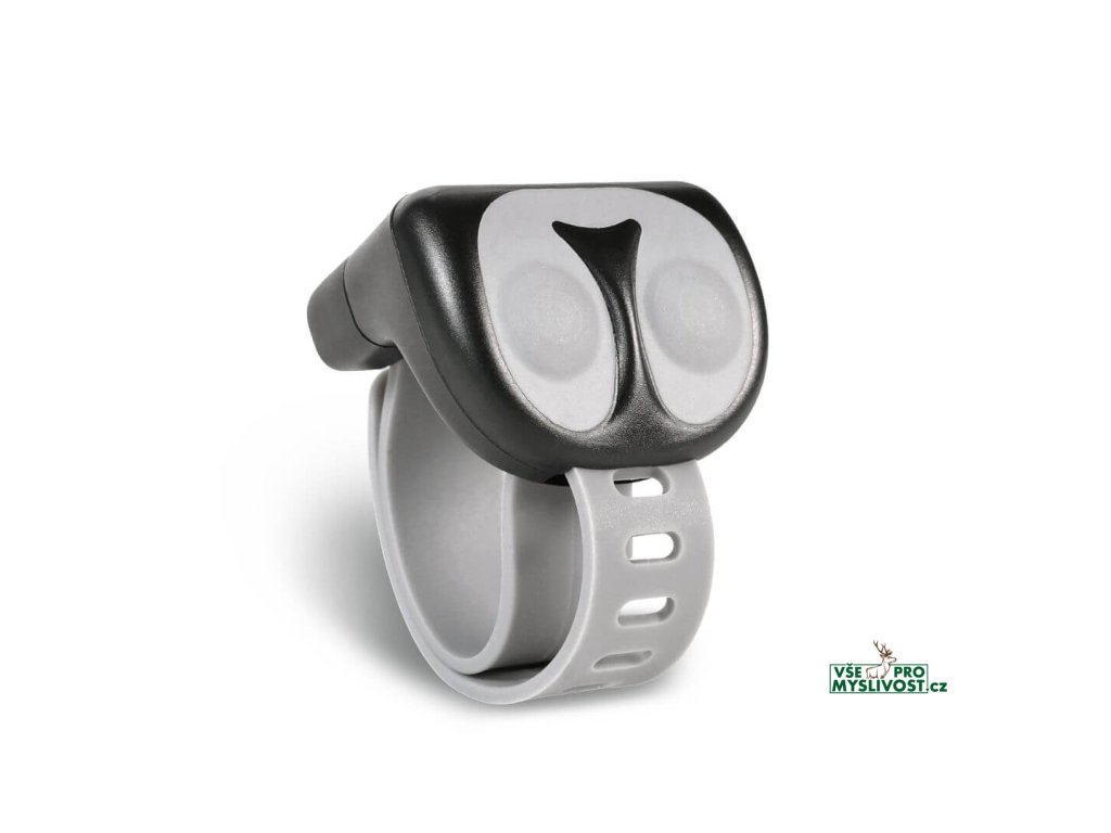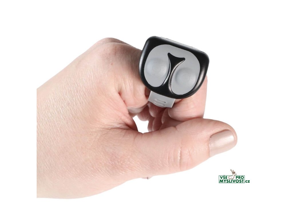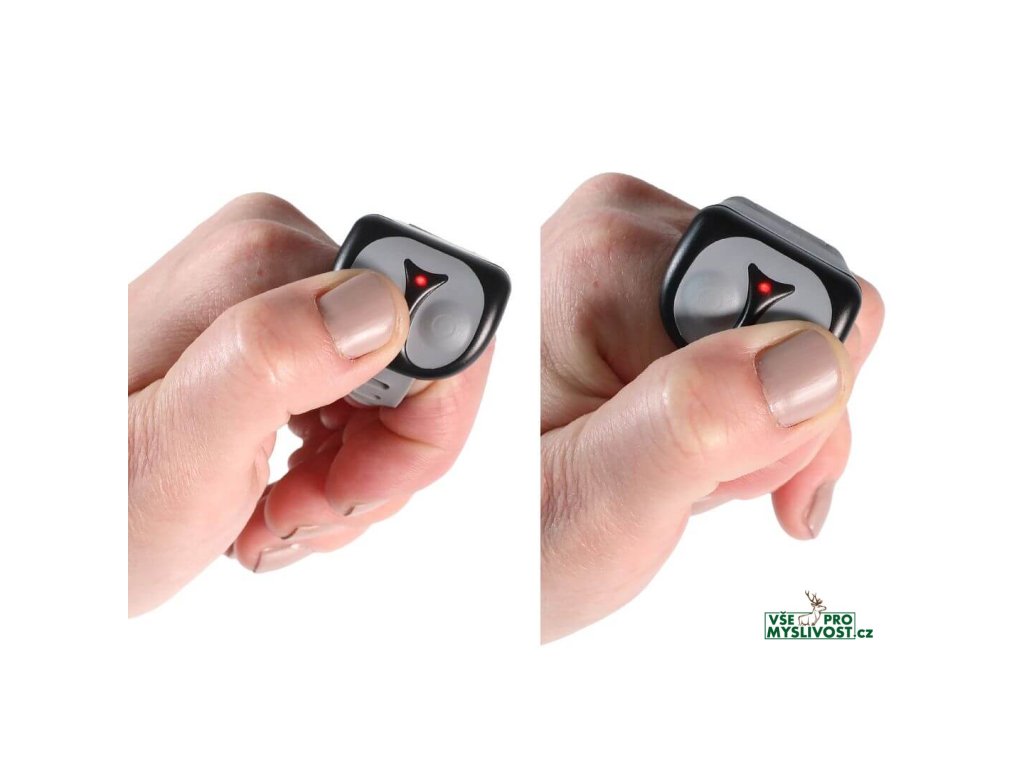 Kynologie velmi často vyžaduje pohotové reakce, a proto jsme vyvinuli ovladač, který je zabudovaný v prstýnku. Pohodlné nošení na prstu či přidělání na řidítka vám ponechá volné ruce, ale stále máte svého pejska v bezpečném dosahu. Na každé ze čtyř tlačítek si můžete libovolně nastavit povely buď pro jednoho pejska nebo tlačítka použít až pro 4 pejsky. Ruční vysílač si tedy můžete v klidu uložit třeba do kapsy a komunikovat se svými chlupáči pouze pomocí prstýnku. Prstýnek s ručním ovladačem komunikuje až na 20 metrů.