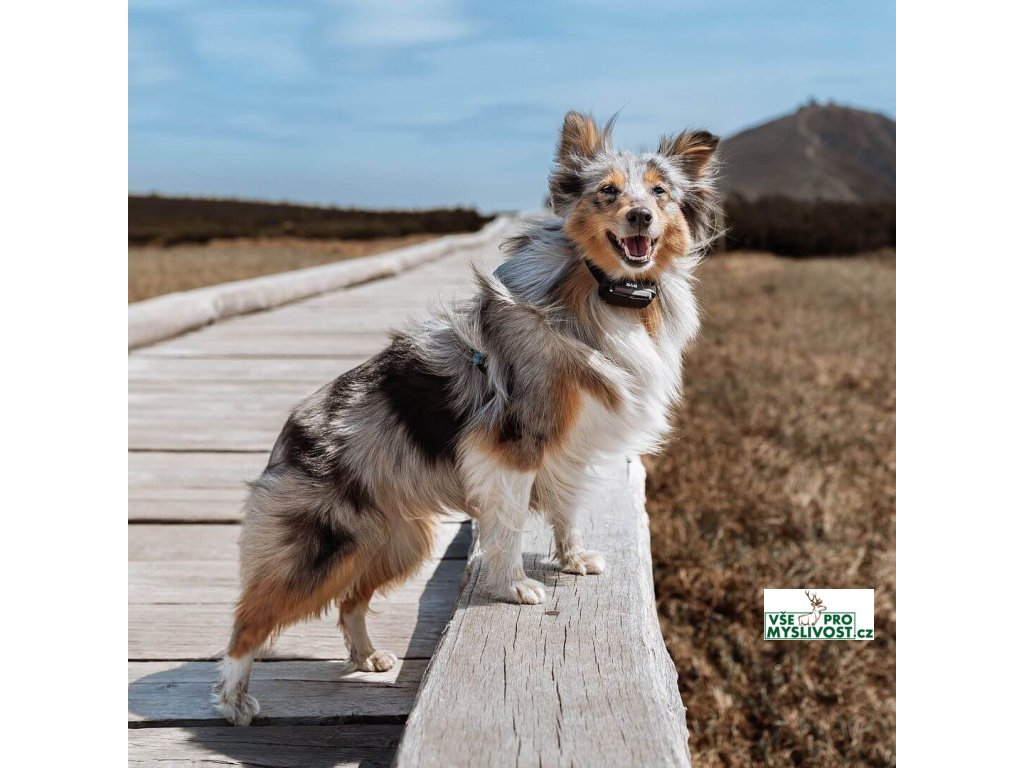 Vodotěsný přijímač neomezuje pejska v žádném počasí a užije si s ním i pořádnou koupačku. Vodotěsný je také prstýnkový ovladač.