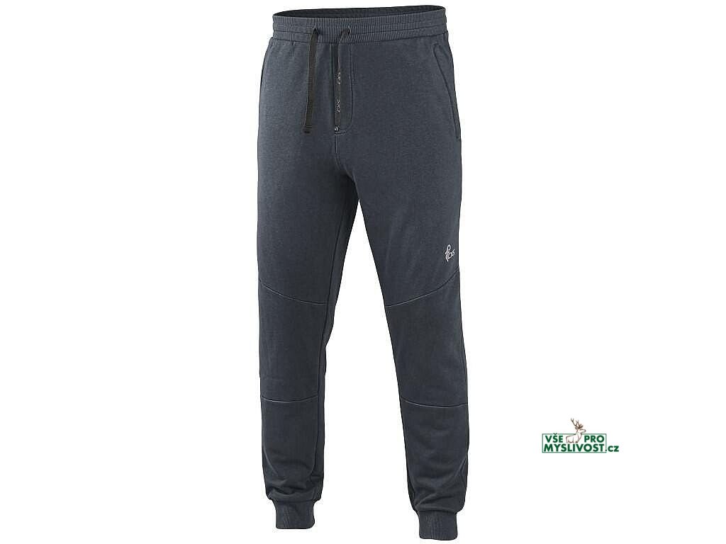 Pánské lehké tepláky, pas a nohavice z žebrové pruženky, boční kapsy na zip, zadní kapsa na zip.