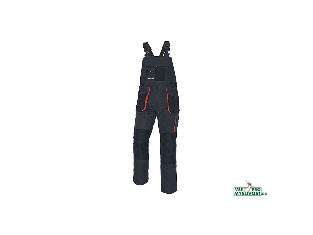 • pánské pracovní kalhoty s laclem, vysoká odolnost • multifunkční kapsy • Oxford 600D zesílení kolenních kapes pro vkládání ochranných nákoleníků