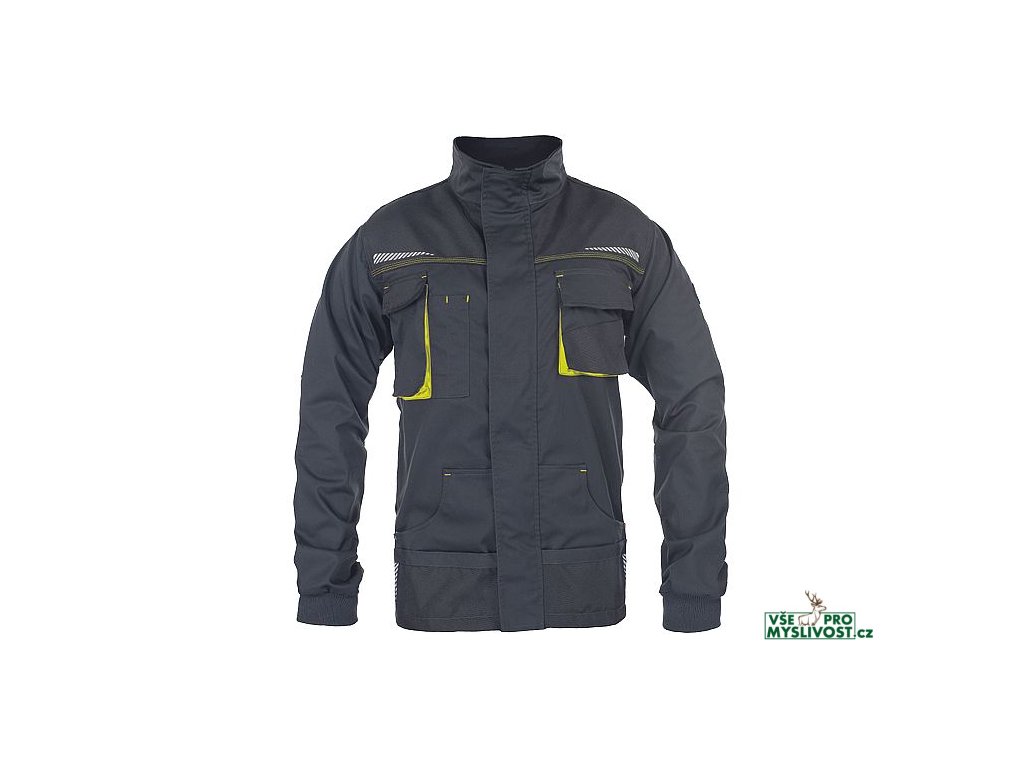 • pánská vysoce odolná strečová pracovní bunda • přední zapínání na zip kryté légou • 2 boční kapsy • 2 náprsní kapsy, jedna na mobilní telefon • Oxford 600D zesílení v oblasti ramen a loktů • tištěné reflexní segmentové detaily • pletené elastické manžety rukávů