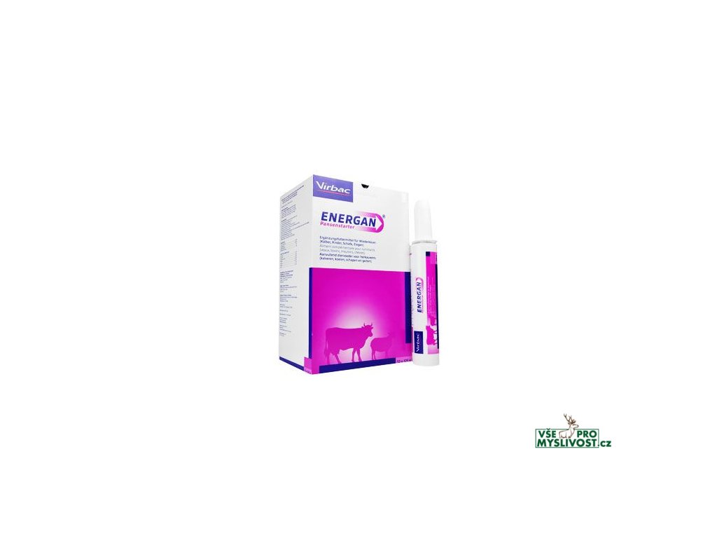 ENERGAN PANSENSTARTER Krmný doplněk (pasta) pro skot, ovce, kozy ke stimulaci gastroesofageální činnosti Složení: Calcium propionate, Propylene glycol, dried yeast, gentian roots (Gentiana). Crude protein 5.5%, Crude fat 0.6%, Crude fibre 2.6%, Crude ash 18.4%. Aditiva na kg: Xantham gum 2400 mg, Calcium sorbate 2200 mg. Popis: Správná činnost gastroesofageálního vestibulu je základním předpokladem pro vyvážený energetický metabolismus u přežvýkavců. Kořen hořce (gentianu) má výrazný účinek na zvýšení apetitu. Aminokyseliny poskytují nutriční podporu pro správný vývoj bachorové flory a jaterních funkcí zvířete. Energan stimulátor bachoru podporuje zažívací procesy ve všech situacích, kde se vyskytuje nedostatek apetitu. Návod k použití: U zvířete musí být přítomen polykací reflex. Při krmení zabezpečte, aby nebyl poraněn hltan. Pokud dojde k jakémukoliv poranění, přerušte podávání a další používání konzultujte s veterinářem. Odřízněte špičku kartridže nožem a vložte ji do dávkovací pistole. Dávkování: Telata: ? kartridže 2x denně po dobu 2-4 dnů. Skot: ? kartridže 2x denně po dobu 2 dnů. Ovce, kozy: ? kartridže 2x denně po dobu 2-4 dnů. Podávání konzultujte s veterinářem. Obsah kartridže: 325gDoplňkové parametry