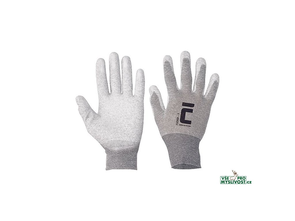 • pletené bezešvé antistatické nylonové rukavice s integrovaným uhlíkovým vláknem • vrstva polyuretanu v dlani a na prstech• pružná manžeta