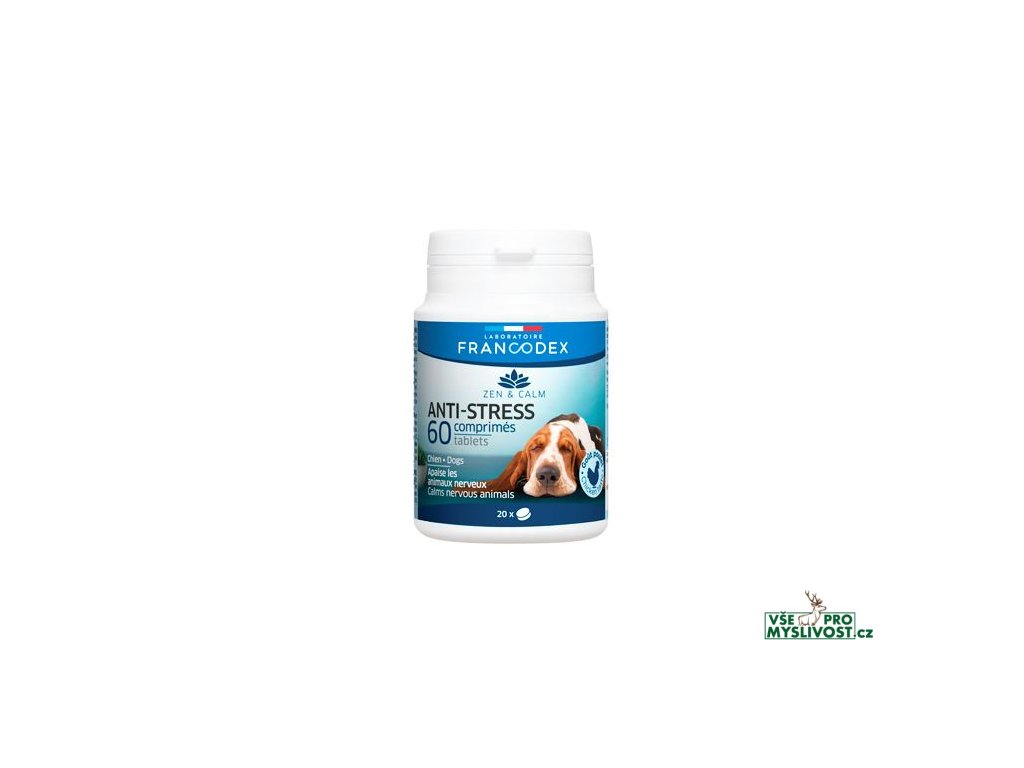 Tablety ANTISTRES FRANCODEX obsahují L-tryptofan. Tuto aminokyselinu tělo využívá k produkci serotoninu, neurotransmiteru, který pomáhá uklidnit hyperaktivní, nervózní nebo úzkostné psy bez jakýchkoli vedlejších účinků nebo závislosti. Dá se použít pro zvířata, která zůstávají přes den sama, na výletě nebo při velmi stresových situacích (stěhování, nový mazlíček v domácnosti...).