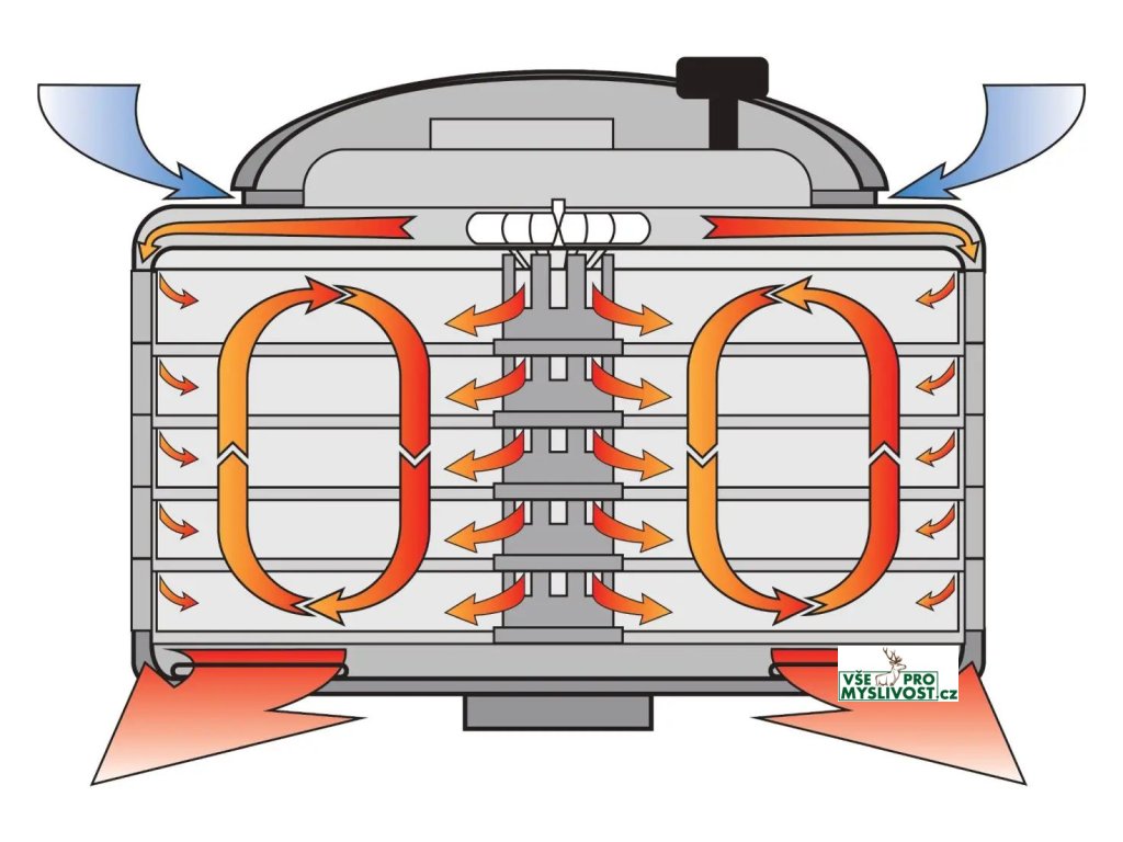 Tato sušička je ideálním nástrojem pro sušení puškových a pistolových nábojnic po mokrém čištění nábojnic, jako je rotační bubnové čištění nebo čištění ultrazvukem. Samostatná a vyjímatelná patra umožňují sušit různé ráže najednou, aniž byste je museli míchat dohromady. Sušička nábojnic je velkokapacitní zařízení, které dokáže vysušit až 1000 kusů puškových nábojnic ráže .223 nebo až 2000 kusů pistolových nábojnic ráže 9 mm. Tato sušička dokáže vysušit vaše nábojnice uvnitř i zvenčí za méně než hodinu. Konvekční ohřev nuceným prouděním vzduchu snižuje možnost vzniku vodních stop na nově vyčištěných nábojnicích. Výkonný 500W topný systém ohřívá vzduch rychle a rovnoměrně, což zkracuje dobu sušení. Konstrukce s nuceným prouděním vzduchu zajišťuje, že teplo a vzduch jsou rovnoměrně rozváděny po jednotlivých patrech, čímž se nábojnice vysuší uvnitř i zvenčí. Ventilátor umístěný nahoře zajišťuje, že se v obvodech nehromadí vlhkost po čistění. Sušicí tácy mají jemné mřížkované dno a záchytná žebra, která udržují nábojnice oddělené v různých vrstvách.