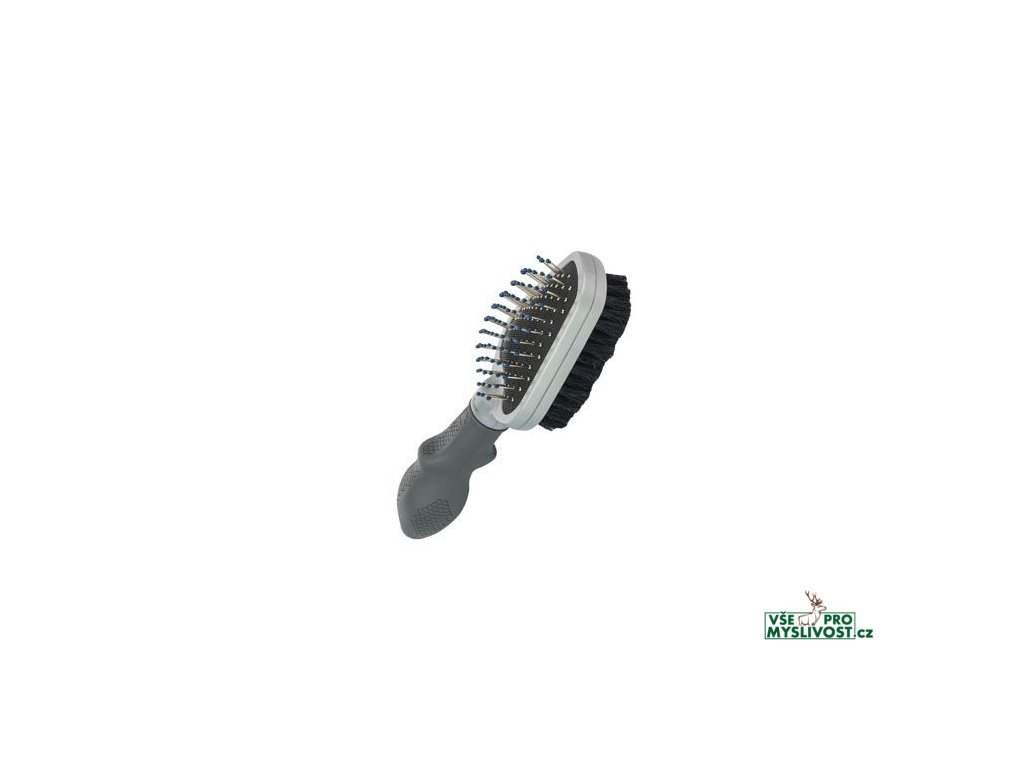 Duální kartáč FURminator s hlavicí se dvěmi typy štětin. Kartáč 2v1 má tvrdé a měkké štětiny pro každodenní péči o srst. Slouží k rozčesávání a odstraňování uvolněné zvířecí srsti. Hřeben je možné používat denně podle potřeby. Praktický doplněk pro všechny chovatele chlupatých mazlíčků, kteří dbají na zdravou a krásnou srst svého chlupáče. Ergonomická rukojeť chrání proti skluzu kartáče z ruky.