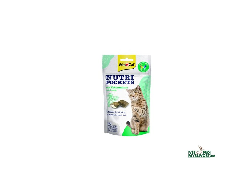 Catnip, šanta kočičí, kočkám působí neškodné potěšení. V přírodě se v porostu šanty kočky válejí, trhají a kousají listy a nakonec se svinou do klubíčka. Po chvíli euforie dochází k útlumu. Kočky, které dostávají Lahodné polštářky Nutri Pockets s catnipem, zůstávají v pohodě a dobré náladě.