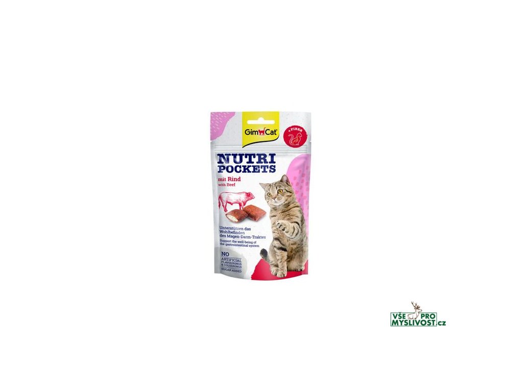 Gimcat Nutri Pocket Beef obsahují i vitamíny a živiny důležité pro pohodu vaší kočky. Kapsičky mají nový, hezčí obal a vylepšenou recepturu. Nutri pockets jsou bez cukru, umělých barviv a konzervačních látek, bez zvýrazňovačů chuti.
