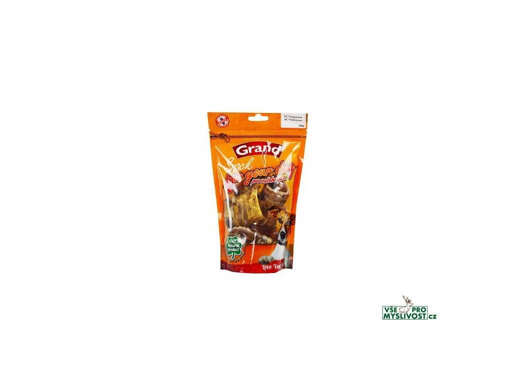 Sušené doplňkové krmivo GRAND trachea slouží jako lahodný pamlsek, který příznivě působí na střevní mikroflóru Vašich miláčků. Krmivo se vyrábí z čerstvých surovin na přírodní bázi (sušení), bez chemických přísad. Kvalitním sušením jsou minerály a vitamíny v krmivu zachovány. Sušené doplňky slouží současně jako pamlsky a odměny, čistí chrup, posilují žvýkací svaly, vyrovnává hladinu žaludečních šťáv a příznivě působí na střevní flóru.