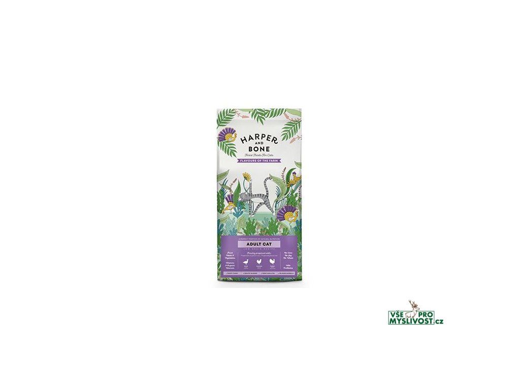 Harper and Bone Cat Adult příchutě farmy složené pouze z nejkvalitnějších surovin s vysokým podílem masa, přídavkem superpotravin a čerstvé zeleniny, zaručující prospěšné živiny a přirozenou chuť pro dokonale vyváženou výživu.