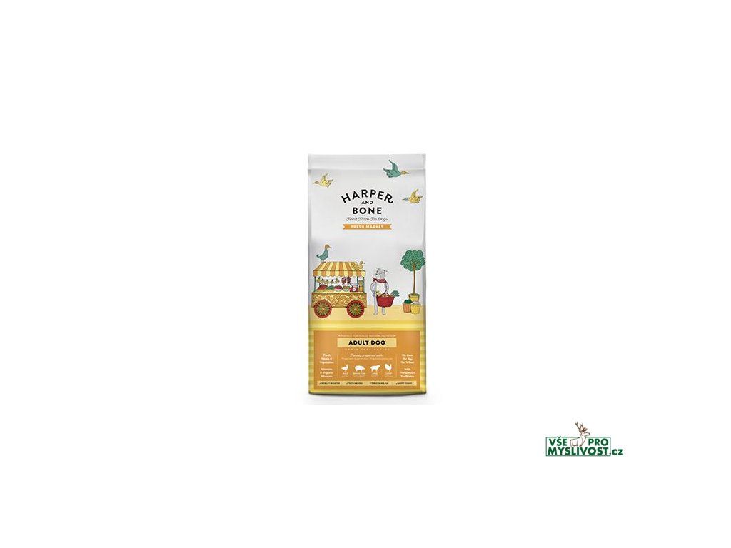 Harper and Bone Dog Adult Large & Medium čerstvé z trhu složené pouze z nejkvalitnějších surovin s vysokým podílem masa, přídavkem superpotravin a čerstvé zeleniny, zaručující prospěšné živiny a přirozenou chuť pro dokonale vyváženou výživu.