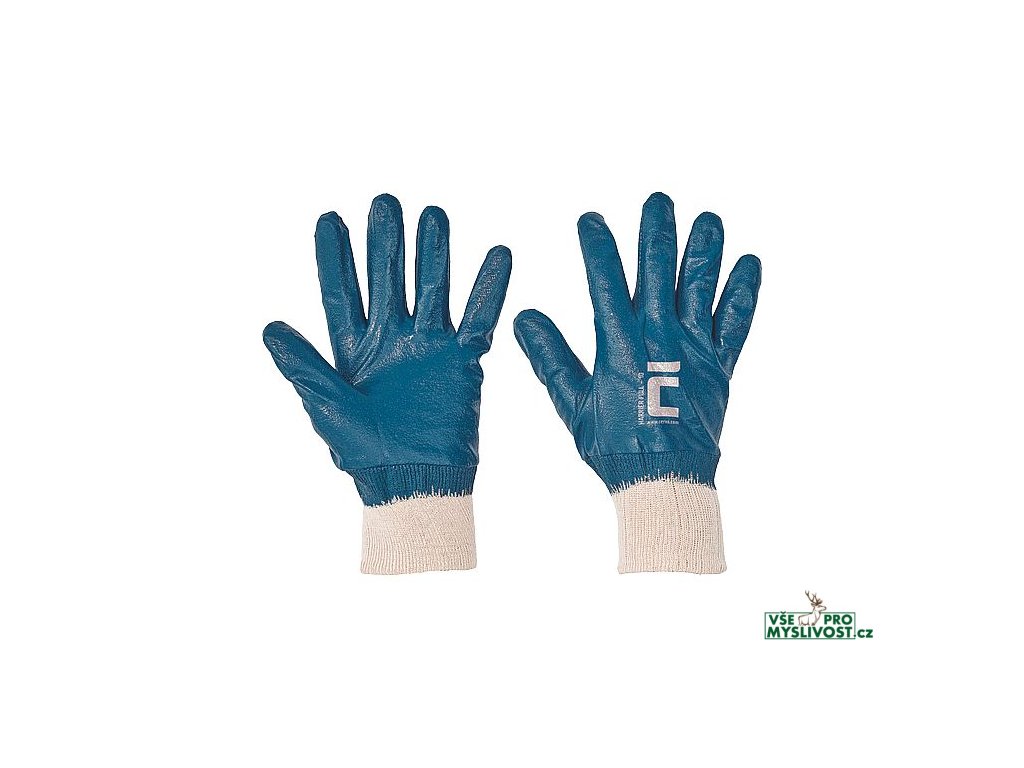 • rukavice šité z bavlněného úpletu • máčené v nitrilu (protismykový úchop) • elastická pletená manžeta