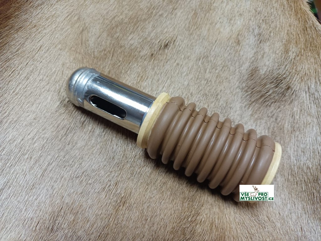 Návod: Bouchejte zvlněnou částí vábničky do dlaně, 2x jeden úder, 1x dvojitý úder.