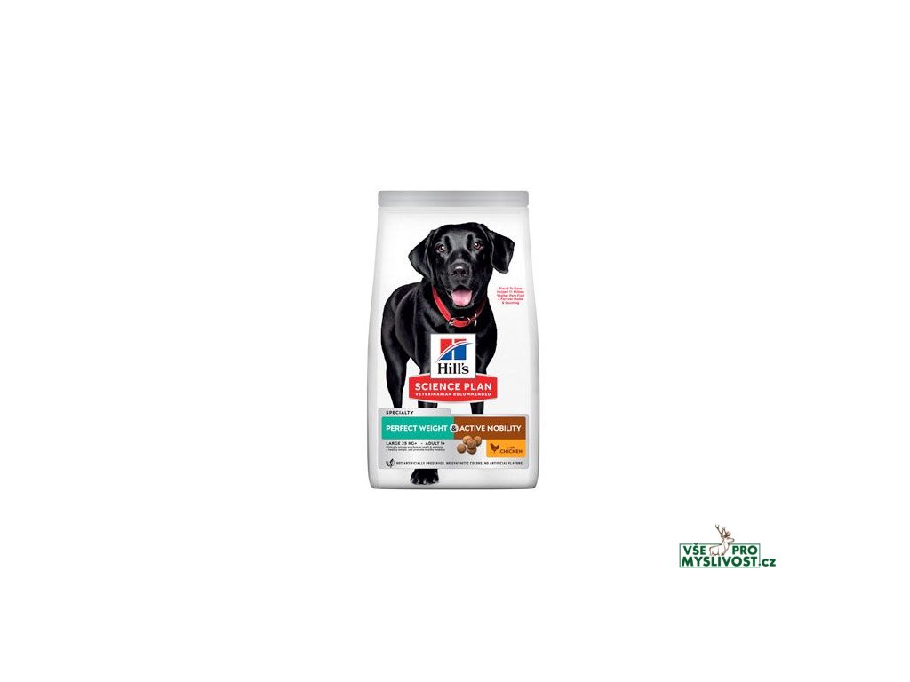 HILL'S SCIENCE PLAN Perfect Weight & Active Mobility pro dospělé psy velkých plemen s kuřetem poskytuje lahodnou, klinicky ověřenou výživu pro dosažení a udržení zdravé hmotnosti a podporu funkce kloubu pro aktivní život.
