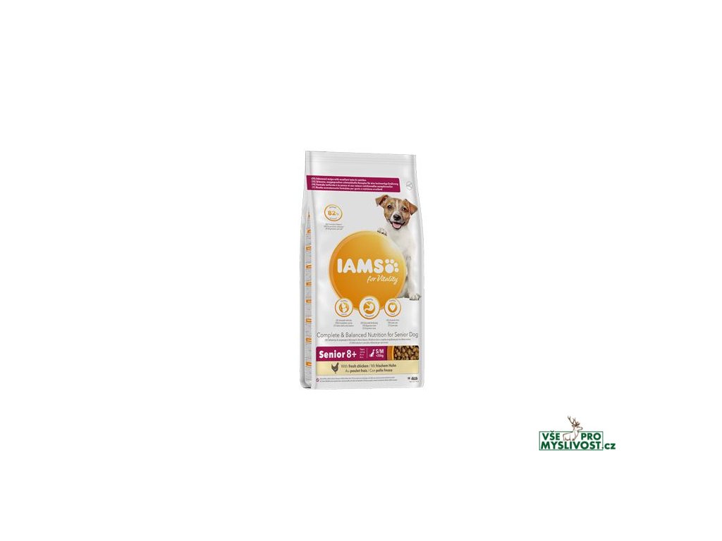 Krmivo IAMS for Vitality pro psí seniory malých a středních plemen je 100% kompletní a vyvážené, odborníky sestavené krmivo, které bude vašemu zvířeti chutnat a svědčit. Naše nová a vylepšená receptura pro psí seniory s čerstvým kuřecím masem je založena na pečlivě vybraných, kvalitních živočišných bílkovinách, které podporují sedm znaků zdravé vitality psa. Aby byl váš pes zdravý, aktivní a plný energie, obsahují naše lahodné receptury až 82 % živočišných bílkovin (z celkového obsahu bílkovin).Naším závazkem je dopřát psům specializované krmivo se skvělou chutí, které si váš domácí mazlíček bezvýhradně zamiluje a které bude podporovat všech sedm znaků zdravé vitality.