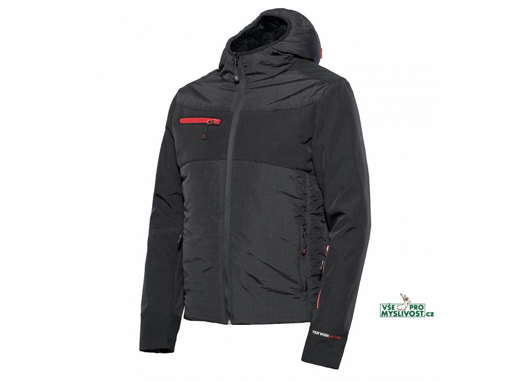Hybridní zimní bunda kombinující vyteplenou část s elastickým softshelem. Bunda má vyteplenou kapuci, na rukávu je praktická podélná kapsa na zip, rukávy mají vnitřní elastickou manžetu. Bunda nabízí také reflexní lemování na zádech.