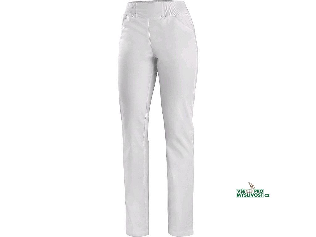 Dámské pohodlné kalhoty s pasem z žebrové pruženky, 2 přední prostorné klínové kapsy, 2 zadní našité kapsy. Doporučené použití: soukromé ordinace, kliniky a velká zdravotnická zařízení, záchranné a zdravotní dopravní služby, lázeňská zařízení, ústavy sociální péče, lékárny, školy se zdravotnickým a gastro zaměřením.