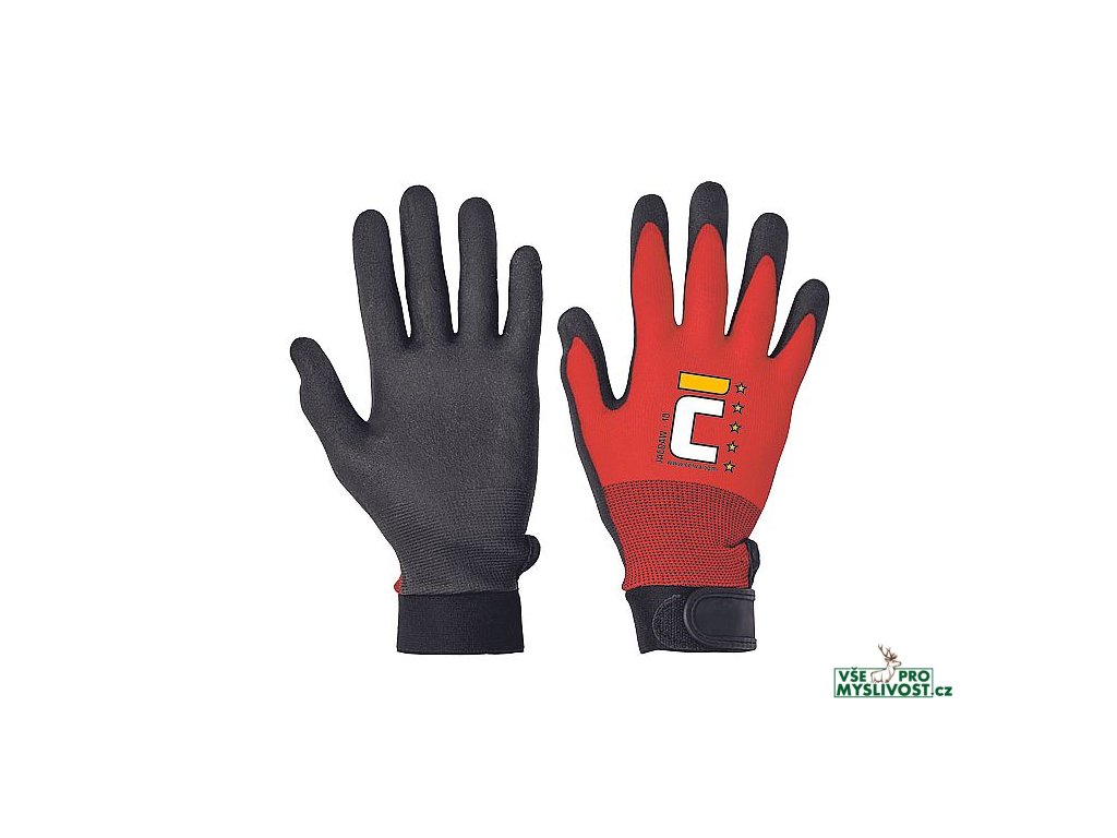 • pletené bezešvé nylonové rukavice (15GG) • s nánosem HPT PVC v dlani a na prstech • pružná manžeta na suchý zip