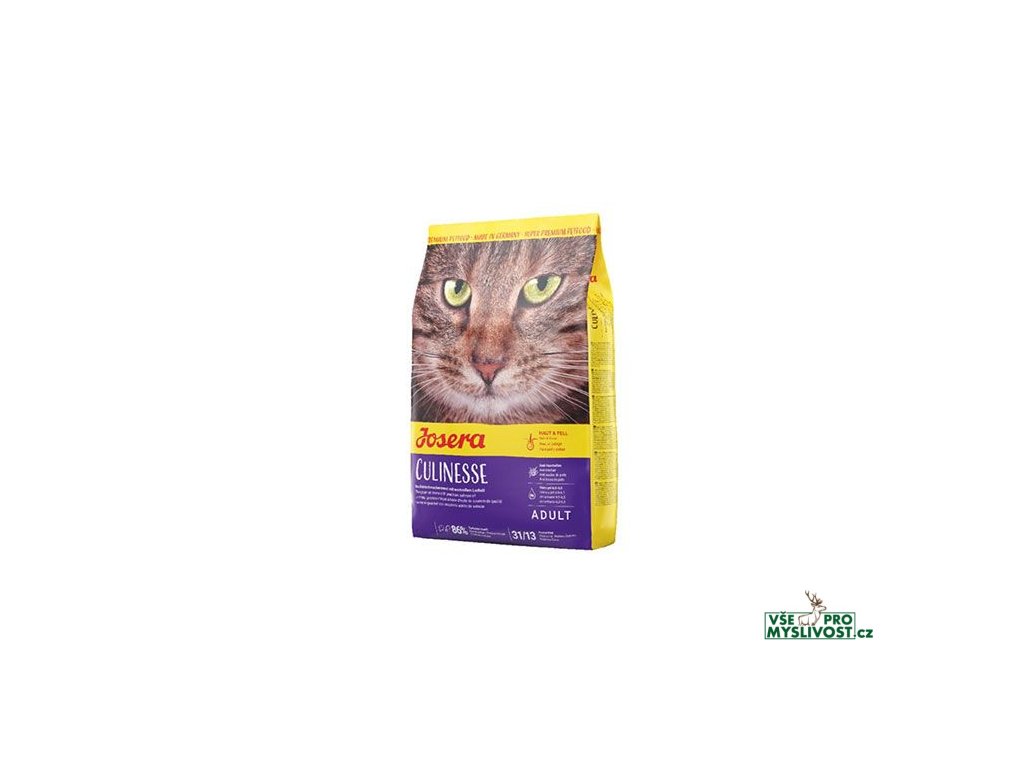 Je Vaše kočka trochu labužník? Josera Culinesse krmivo pro kočky s obsahem jemného kuřecího masa a kvalitního lososa je přesně tím pravým pro náročné kočky. Díky vyvážené receptuře je krmivo Josera Culinesse lehce stavitelné a velmi chutné. Kompletní krmivo Josera Culinesse je přizpůsobeno potřebám dospělých koček. Díky použití nejkvalitnějších surovin, cenných antioxidantů a díky šetrné výrobě je krmivo lehce stravitelné a chutná i největšímu kočičímu labužníkovi.