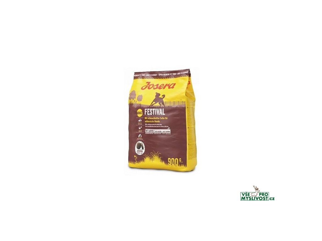 Obzvlášť aromatické a chutné: křupavé granule od Josera Festival s práškovou omáčkou nabízejí Vašemu náročnému pejskovi jedinečný chuťový zážitek jak v suché, tak i mokré formě. Vyvážená receptura s lososem je bohatá na energii pro aktivní a sportovně založené psy. Různé a snadno absorbovatelné výživové látky se postarají o pohodu a aktivitu. Josera Festival se vyznačuje vyváženým obsahem vápníku, fosforu, vitamínu C, manganu a mědi. Tento komplex vitálních látek se postará o silnou stavbu kostí a zdravé klouby. Cenné mastné kyseliny, zinek a měď se zlepšují zdraví kůže a lesklost srsti. Neobsahuje žádná umělá barviva, aromata, konzervační látky, ani geneticky upravované suroviny. Neobsahuje přísady, které mohou způsobovat alergie, jako jsou pšenice, cukr, sója nebo mléčné produkty. Kvalita všech přísad je neustále kontrolována. Kvůli zachování cenných vlastností, jsou granule baleny do praktického, znovuuzavíratelného sáčku AromaSafe.Josera Festival v přehledu: