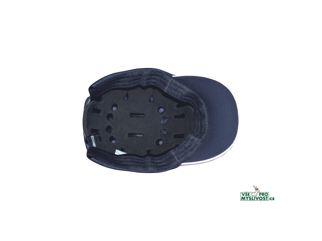 čepice s pevným kšiltem; plastová vnitřní výztuha; nastavitelná velikost; odpovídá normě EN 812