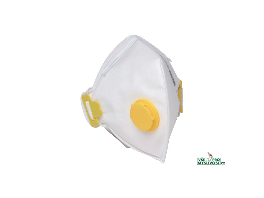 FFP2 respirátor s výdechovým ventilkem chránící před jemnými částicemi a aerosolem, včetně jemného prachu, výparů, vláken a mlhy; nastavitelné hlavové popruhy těsní pro různé tvary obličejů; každý respirátor je balen samostatně; balení obsahuje 10 kusů; vyrobeno v UK; hmotnost 18 g