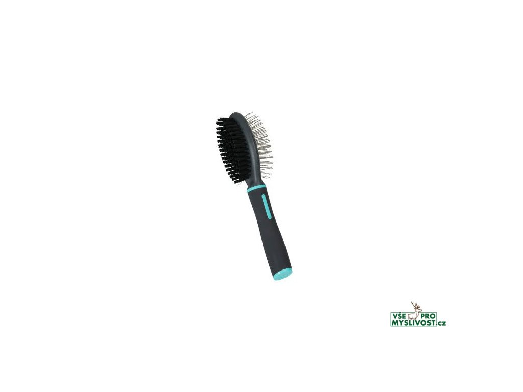 Oboustranný kartáč pro psy s dlouhou srstí. Rozplétá a dodává lesk.- Kovové hroty vyčesávají a jemně rozplétají hustší části srsti, zatímco nylonové štětiny srst perfektně vyhlazují a dodávají jí lesk.