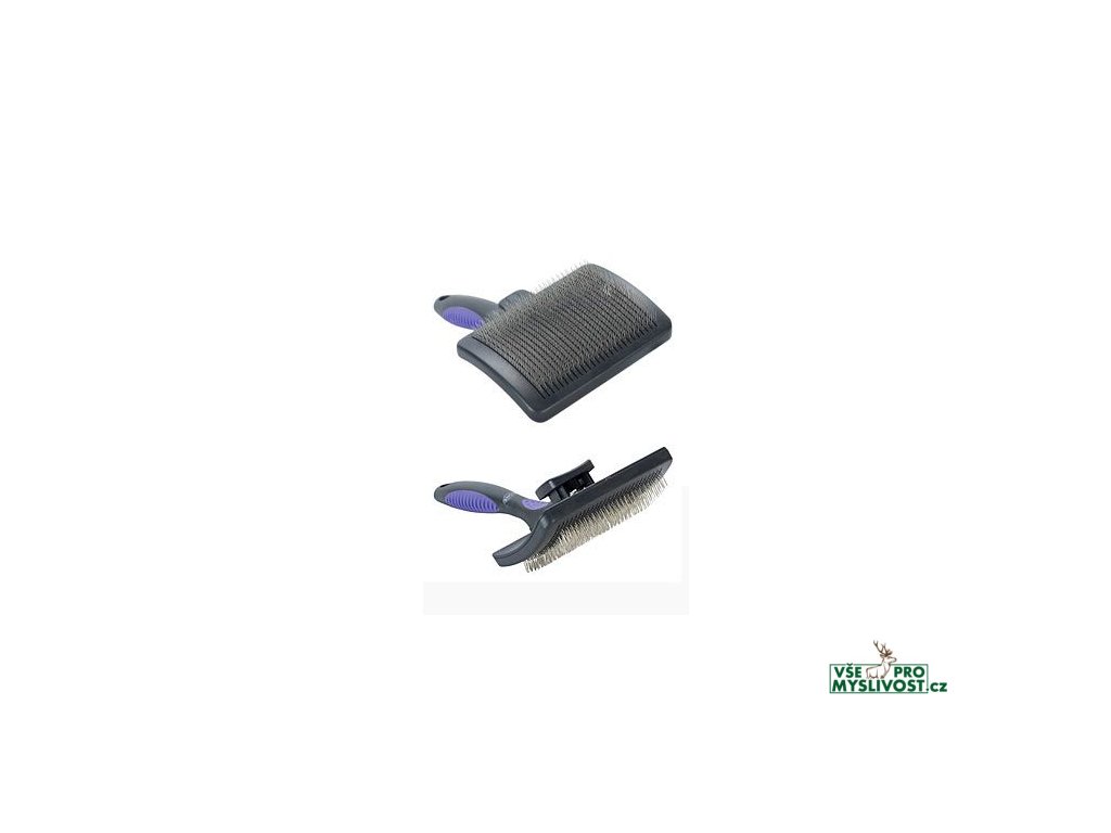 BUSTER samočisticí slicker - Slicker Brush je jemný a účinný víceúčelový pečující nástroj pro odmaštění a odstranění nechtěných vypadávajících chloupků - Zasouvací kolíky vám ušetří drahocenný čas na čištění - Když je podložka plná, uvolněte chloupky stisknutím tlačítka zadní strana vložky - Pro dlouhé/silné/dvojité pláště