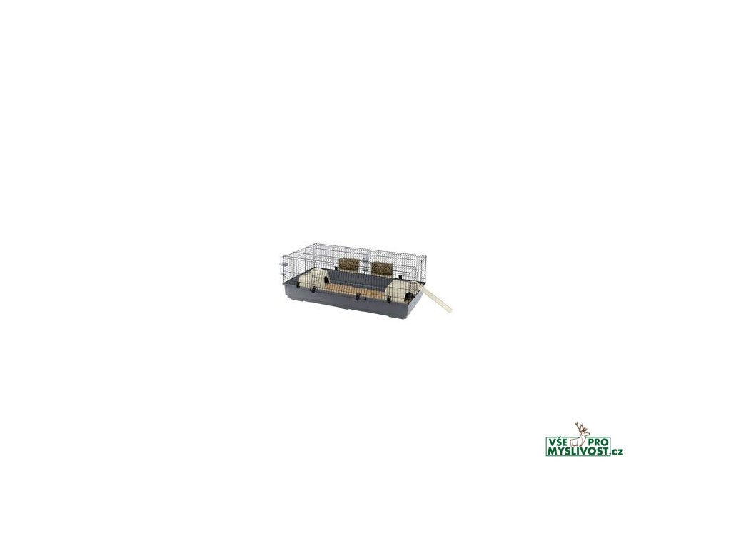 RABBIT 140 je velmi prostorná klec, ideální pro ubytování jednoho nebo více králíků. Dodává se s příslušenstvím, včetně dvou plastových podavačů na seno, dvou lahví na pití a dvou misek na jídlo. K dispozici jsou dvě malé králíkárny, nezbytné pro chvíle relaxace a vybavené stupňovitou konstrukcí, která umožní vašim králíkům snadno vstoupit. Dva domečky můžete umístit, kamkoli chcete, uvnitř boudy. Nakonec je tu plastový žebřík, který může váš králík použít, aby se dostal z boudy a mohl se volně potulovat po vašem domě.- Široký životní prostor
