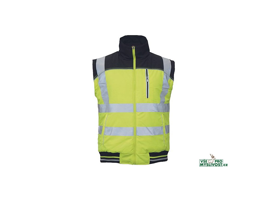 • oboustranná pánská zateplená vesta • jednostranná HI-VIS vrstva s tištěnými 5 cm reflexními pruhy • oboustranně využitelné boční kapsy • 600D Oxford zesílení v oblasti ramen • reflexní paspulky • elastický náplet v pase