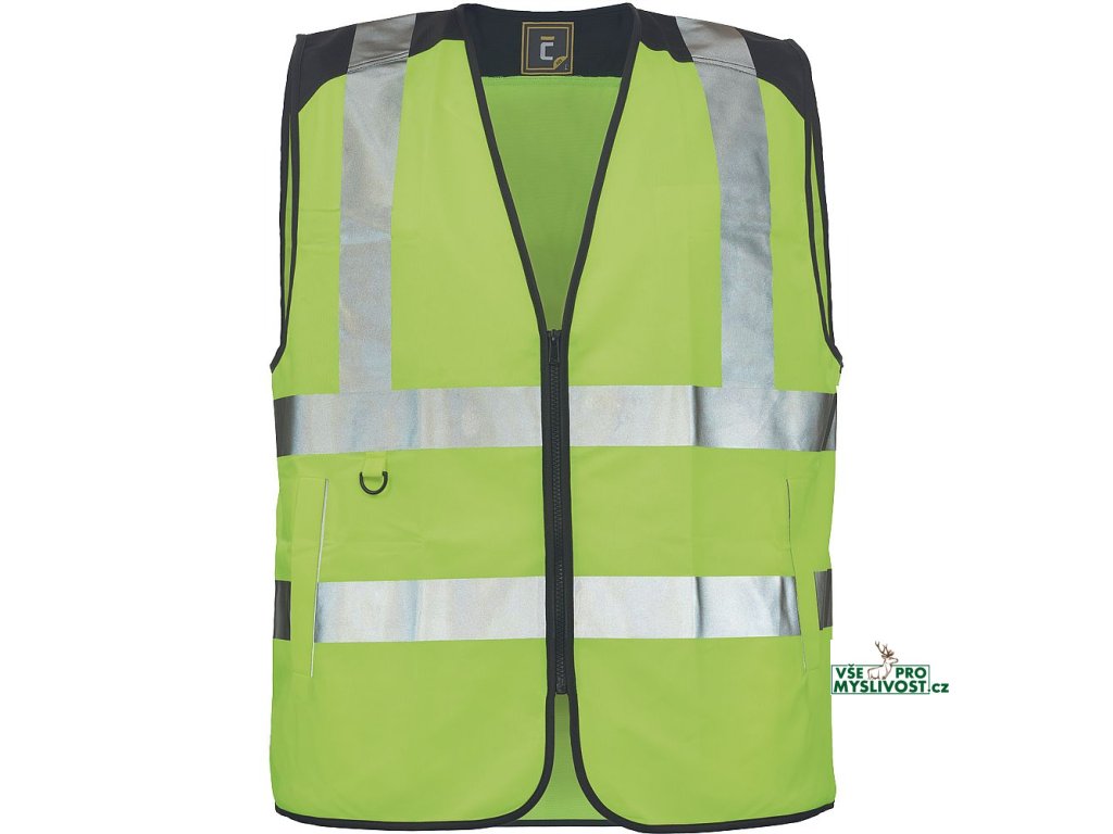 • HI-VIS pracovní vesta s tištěnými 5 cm reflexními pruhy • zapínání na zip • 2 boční kapsy