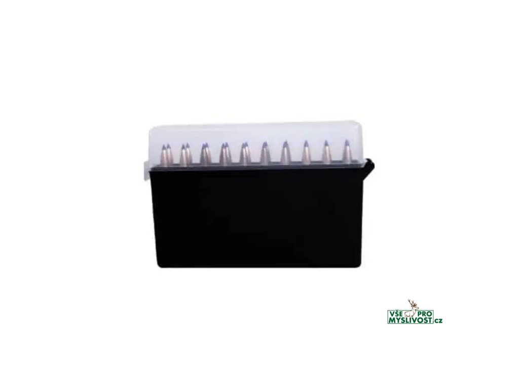 Kompaktní provedení s výklopným víkem představuje výborné řešení pro skladování a přepravu nábojů. Průhledné víko umožňuje snadnou kontrolu obsahu. Možnost stohování zajišťuje přehledné skladování např. ve střeleckém kufru nebo trezoru.