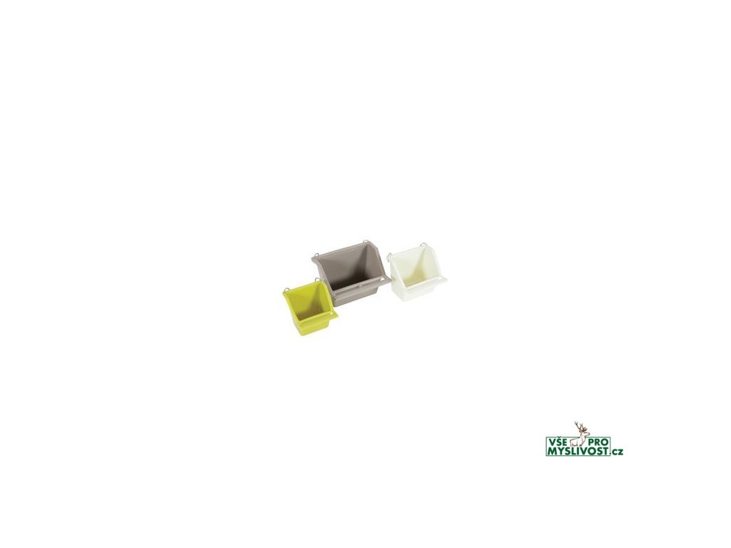 Závěsné plastové krmítko do klece je opatřeno bidýlkem, je vyrobeno ve třech přírodních barvách.Rozměr: 9 x 7 x 7,5cm cm