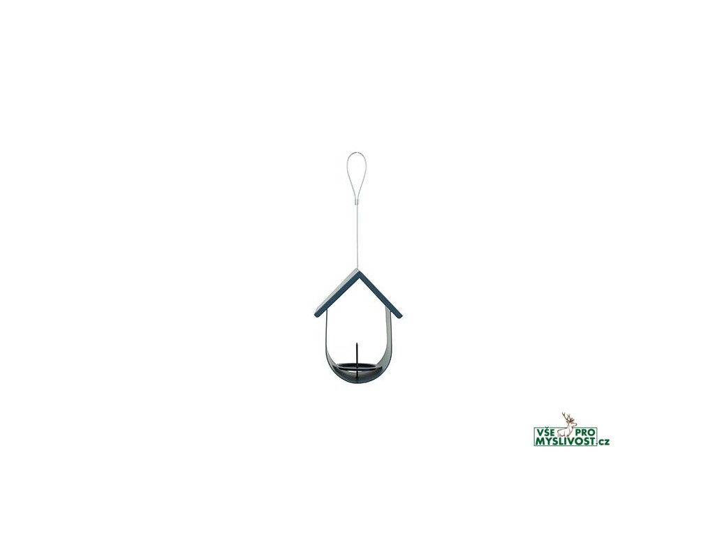 Závěsné kovové krmítko na 1 lojovou kouli, se stříškou a kovovým lankem pro větší odolnost.