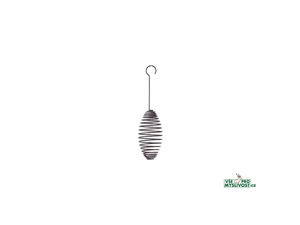 Závěsné kovové krmítko ve tvaru spirály na 3 lojové koule. Výška spirály 15cm. Dodáváno bez koulí.