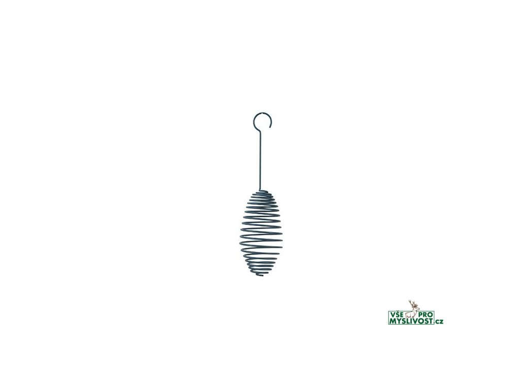 Závěsné kovové krmítko ve tvaru spirály na 3 lojové koule. Výška spirály 15cm. Dodáváno bez koulí.