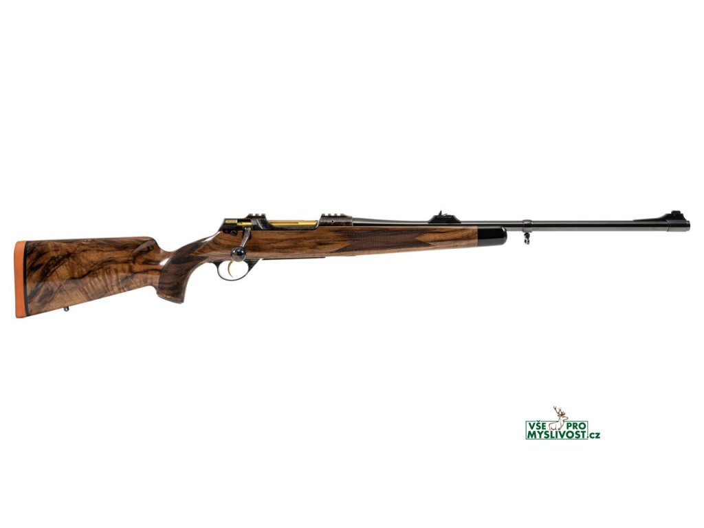 Jedinečná zbraň vyrobena jako CUSTOM unikát - zbraň IWA 2023! Exkluzivní dřevo s kombinací ebenu, rytiny, zlacení, Safari mířidla a poutka, Safari botka. Uloženo v exkluzivním Safari kufru