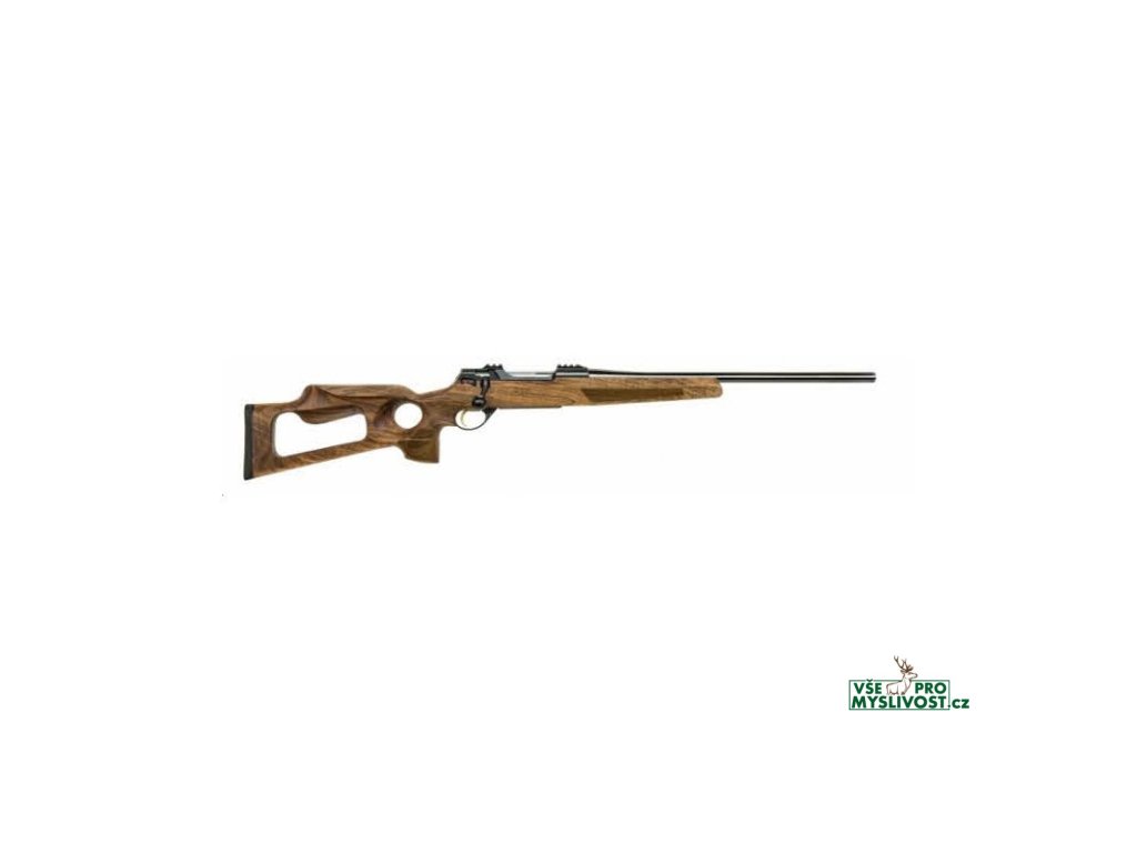 Precizní kulovnice se špičkovým beddingem v dřevěné, anatomické pažbě s otvorem pro palec tzv. Thumbhole, stavitelná spoušť 400g - 1 550g