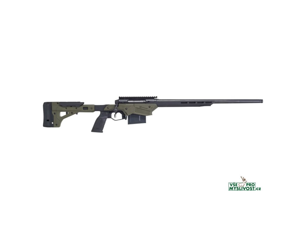 Populární kulovnice AXIS II v terčovém provedení se stavitelným pažbením od MDT Chassis s M-LOK předpažbím, tečovou hlavní se závitem, stavitelnou spouští Accutrigger a odnímatelným zásobníkem kompatibilním s Accuracy International