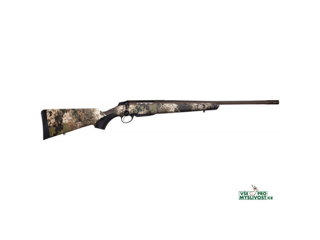 T3x Lite Veil Wideland je dokonalým společníkem pro jižní lesy a otevřené pláně. Povlak Cerakote na hlavni zvyšuje odolnost vůči povětrnostním vlivům. Úsťová brzda zajišťuje snížení zpětného rázu. Tikka T3x Lite Veil Wideland má kanelovanou hlaveň i závěr, součastí zbraně je úsťová brzda. Hlaveň Hlavně a nábojové komory opakovacích kulovnic TIKKA T3x LITE jsou vyrobeny kováním za studena na trnu (na hotovo) z vysoce jakostní oceli s příměsí chrómu a molybdenu. Hlaveň opakovací kulovnice TIKKA T3x LITE je upevněna do pouzdra závěru šroubením, ve zbrani je pak usazena jako zcela volně plovoucí. Aby bylo dosaženo pověstné deklarované míry přesnosti opakovacích kulovnic TIKKA T3x LITE, je ústí hlavně zapuštěno do hlavně a ručně opracováno. Hlaveň je kanylovaná. Součastí zbraně je úsťová brzda. Systém Systém opakovacích kulovnic TIKKA T3x LITE využívá modifikovaného válcového odsuvného závěru, jehož extrémně pevné tělo je vyrobeno z vysokojakostní nerezové oceli. Závěr opakovací kulovnice TIKKA T3x LITE se zamyká dvojicí mohutných ozubů do hlavně. Závěr kulovnic TIKKA T3x LITE se otevírá v úhlu 70°. Chod závěru kulovnic TIKKA T3x LITE je s největší pravděpodobností nejjemnější a nejtišší ze všech závěrových systémů, v současné době vyráběných opakovacích kulovnic. Závěr kulovnice TIKKA T3x LITE Veil Alpine je kanylovaný Spoušťový systém Opakovací kulovnice TIKKA T3x LITE jsou vybaveny momentovou spouští, jejíž odpor je snadno seřiditelný v intervalu od 1 do 2 kg. Spoušťový systém kulovnic TIKKA T3x LITE je upevněn v pouzdru z hliníkové slitiny, zatímco jeho jednotlivé části systému jsou vyrobeny ze speciální oceli. Kohoutek spouště opakovací kulovnice TIKKA T3x LITE je opatřen vertikálními drážkami, aby byl zajištěn optimální kontakt za jakýchkoli podmínek, i v rukavicích. Standardně je kulovnice TIKKA T3x LITE dodávána bez napínáčku. Pojistka Absolutně neslyšná mechanická pojistka opakovací kulovnice TIKKA T3x LITE uzamyká spoušťový mechanizmus a kliku závěru. Je-li kulovnice TIKKA T3x LITE natažena, objeví se v zadní části pouzdra závěru výstražník. Zásobník Jednořadý zásobník opakovací kulovnice TIKKA T3x LITE je vyroben z velmi odolného polymeru. Mířidla Kulovnice TIKKA T3x LITE je standardně dodávána bez mířidel. Pažbení Pažbení opakovací kulovnice TIKKA T3x LITE je vyrobeno z velmi kvalitního polymeru zesíleného skelným vláknem. Opracování a povrchová úprava tohoto pažbení jsou na velmi vysoké úrovni. Úchop synthetického pažbení kulovnice TIKKA T3x LITE je velmi příjemné, zbraň neklouže ani v mokrých rukou nebo v rukavicích. Předpažbí a pistolová rukojeť kulovnice TIKKA T3x LITE jsou opatřeny výraznou a hlubokou, laserem vyříznutou rybinou. Hlaviště pažby kulovnic TIKKA T3x LITE je ukončeno pružnou botkou z přírodní pryže, která velmi dobře tlumí zpětný ráz zbraně. Protože Finové jsou nám svou postavou podobní, opakovací kulovnice TIKKA T3x LITE zpravidla padne českému lovci jako ulitá. Upevnění montáže Na pouzdru závěru opakovacích kulovnic TIKKA T3x LITE je vysoustružena hluboká 17mm široká rybina k upevnění klasické montáže nebo k upevnění montáže weaver.