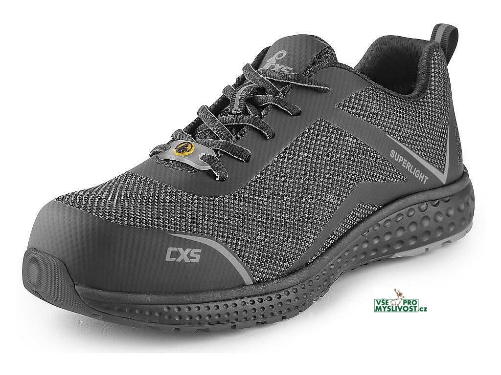 Bezpečnostní ultralehká ESD polobotka s prodyšným svrškem, ochrannou špicí a antipenetrační stélkou, reflexní doplňky. Materiál: kombinovaný svršek z lehkého a prodyšného úpletu s KPU doplňky, odlehčená nano ochranná špice z karbonových vláken, antipenetrační stélka z netkané nano textilie, bez kovových součástí, prodyšná textilní podšívka z polyesteru, podešev: EVA / guma, protiskluzová, olejivzdorná, antistatická, odolná proti propichu.